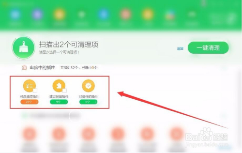 清理界面中,会显示所有插件分类。