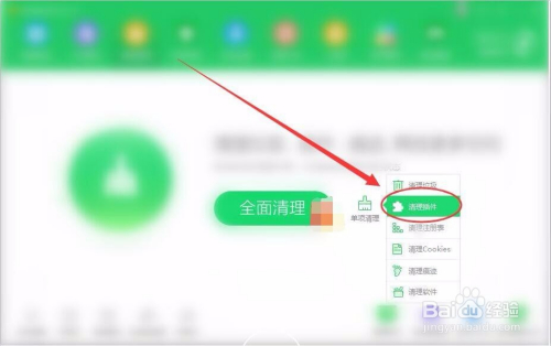 呈现的下拉菜单中,选择清理插件选项。