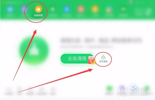 打开平安卫士,选择电脑清理选项卡,单击单项清理选项。