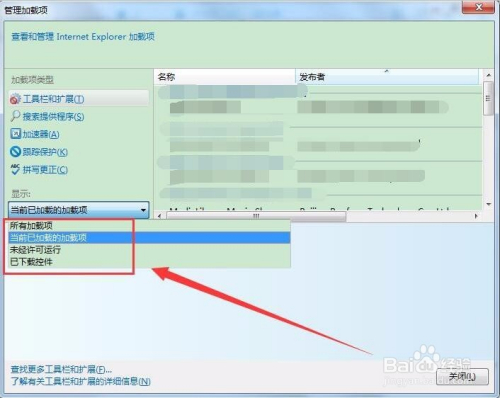 单击显示项下的下拉菜单,可以选择分类显示加载项。