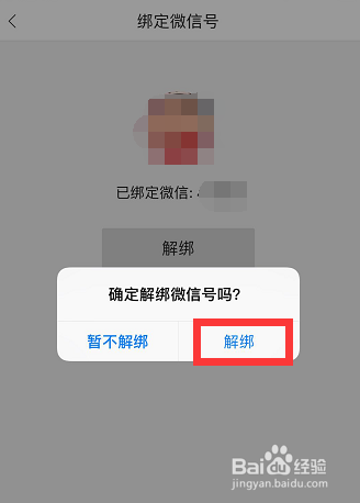 点进去后进入【绑定微旌旗灯号】本家儿页,在该本家儿页下有一个【解绑】按钮,点击【解绑】按钮,如图所示!