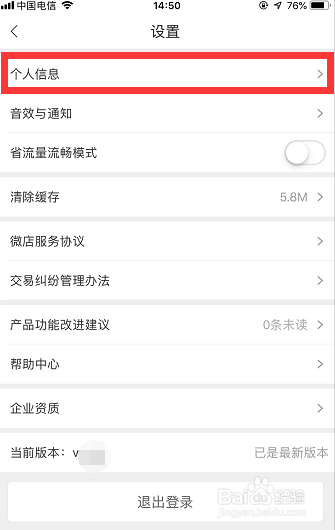 在我的【设置】本家儿页下,第一栏有一项【小我信息】如图所示,点击该【小我信息】,进入我的【小我信息】本家儿页!