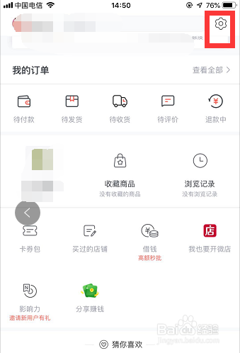 进入我的本家儿页后,在我的本家儿页右上角找到【设置】图标(如图所示),点击该设置图标,进入我的【设置】本家儿页!