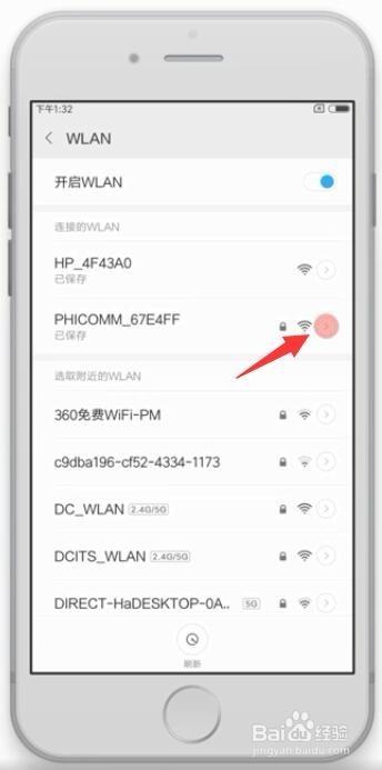 打开手机WiFi设置,选择你想连的WiFi,点击左边的箭头;