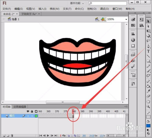 图层的第1帧绘制一张嘴巴,注重露出牙齿。