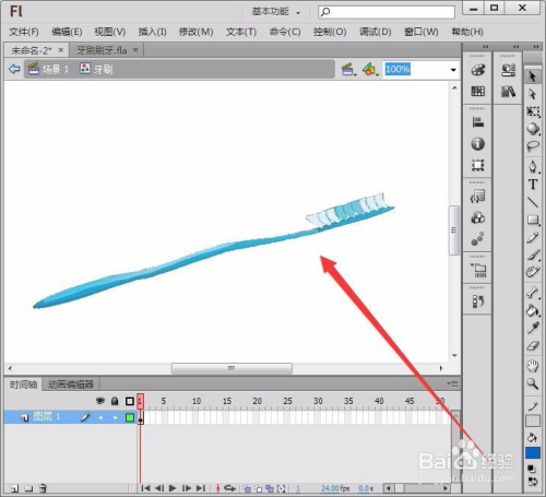 回参加景1,新建一个图层,在第一帧插入牙刷元件。