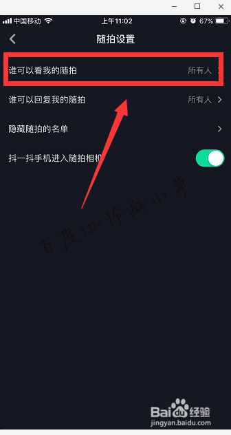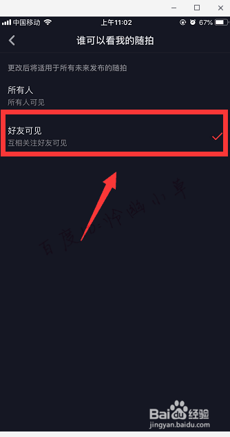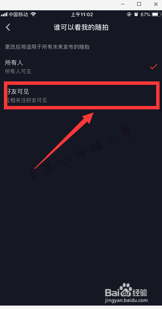 默认是“所有人”可以看我的随拍,若是要设置当作仅老友可见,点击它。