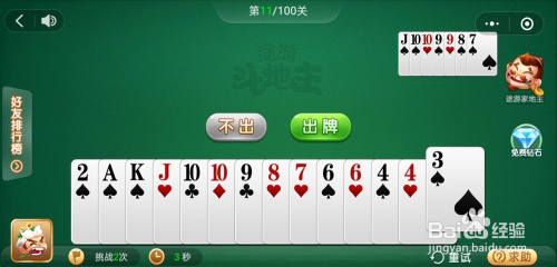 电脑打出一张3,我打出一张A,接着打出一张K一张J一张4就过关了。