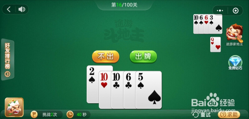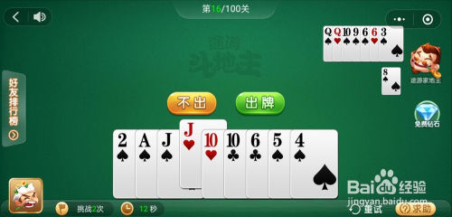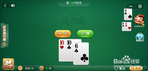 电脑打出一对6,我打出一对10,接着打出一张6就过关了。
