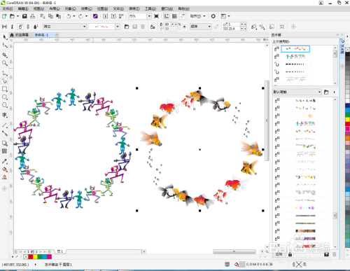 点击【结果】-【艺术笔】,将艺术笔设置栏调出。点击【多边形东西】,按图示设置好参数后,在作图区域绘制一个十边形图案(如图所示);