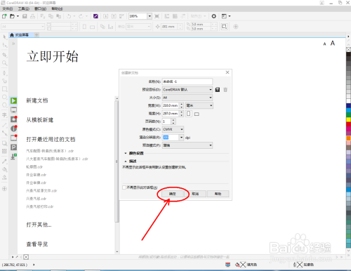 打开CorelDRAW X8软件,点击【新建文档】,按图示参数新建一个cdr文档(如图所示);