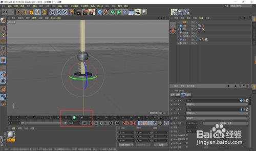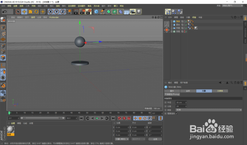 首先建立一个底座,我利用的是一个圆柱,设置相关属性。在建立一个球体。直接播放。