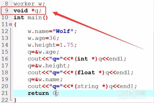 法式中界说了一个无类型指针,可以看到它没有界说数据类型。