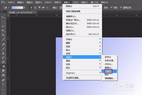 第四步:在菜单栏中选择“滤镜--像素化--马赛克”选项。