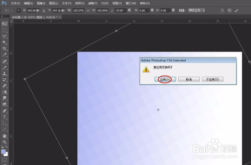 第七步:按Ctrl+T键使复制的布景图层酿成可调整状况,扭转至合适的角度,单击“应用”按钮。