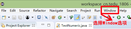 第一步、点击Eclispe头部一行选项中的 Windows选项