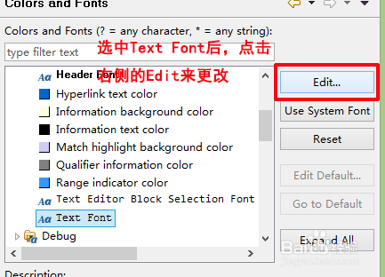 第六步、选择好Text Font之后,点击右侧的 Edit按钮。