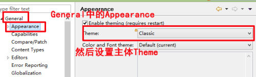Appearance选项,然后点击右侧的Theme下拉框,初始值为Classic。