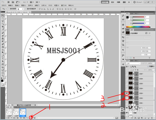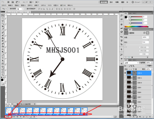 点击【窗口】-【动画】,调出动画设置栏。点击【新建动画帧】,埋没分针1,显示分针2;同样的步调完当作后面几个动画帧的建造。选中所有动画帧,将时候设置为:1秒,次数设置为:永远(如图所示);