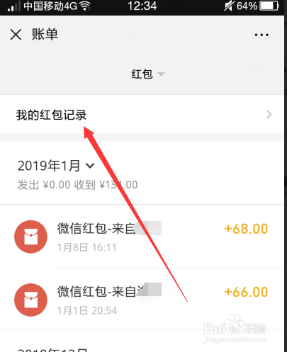 之后我们点击【红包】,就可以看到我们的全数的红包记实