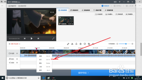 然后要把片段的视频去失落先选中该视频并按鼠标右键可弹出下列菜单。