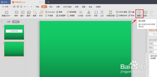 第二步:在菜单栏“插入”中找到“音频”选项。