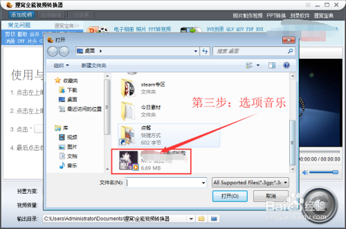 MP3转换MP4格局步调三:点击“添加视频”选项今后,在文件办理中选择需要转换的MP3音频。
