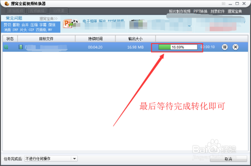MP3转换MP4格局步调六:点击起头转换今后,期待软件完当作格局转换即可获得MP3转换当作的MP4文件。