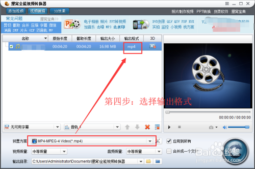 MP3转换MP4格局步调四:完当作MP3格局音频的添加今后,将转换输出文件的格局选为MP4格局。