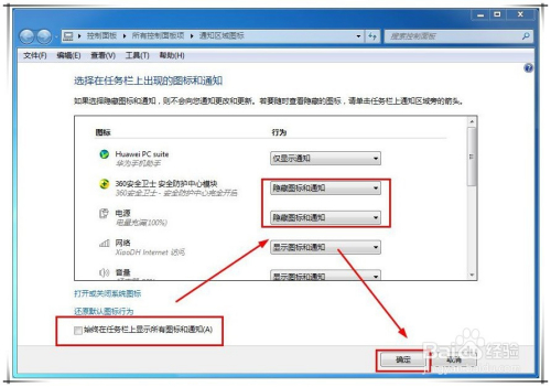 第四步,在打开的窗口中,打消“始终在使命栏上显示所有图标和通知”复选框的选择,再在图标列表中将一些图标的行为点窜为“埋没图标和通知”。如许,可以将一些不常用的图标埋没起来,进而使得使命栏上的空白区域更多,可以或许显示的图标更多。