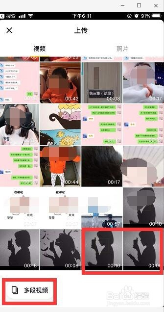 将适才两段视频上传,传的时辰可以点击下方的多段视频,然后就可以选择两个视频,选好后配下音乐。