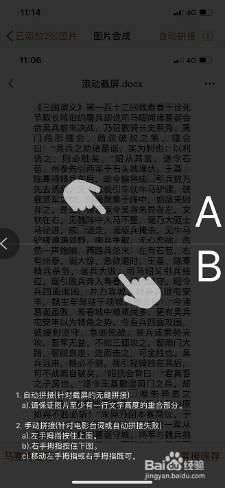 打开需要截屏的内容,分屏截图,部门内容重叠,如图中红色框中部门;