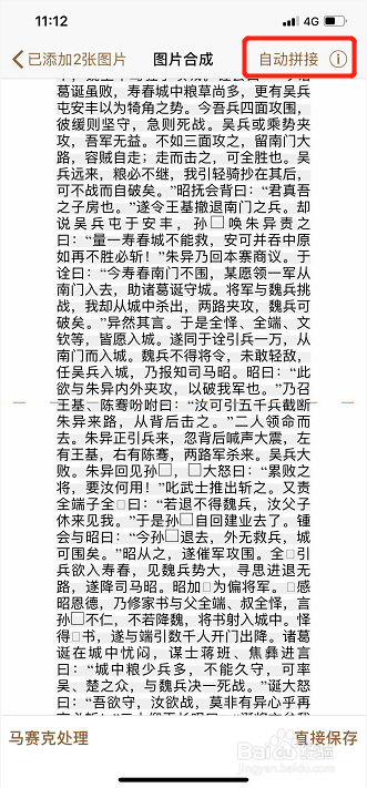 点击“归并”,软件会主动剔除两张图中的重合部门。若是对劲,点“主动拼接”,若是不对劲,点“主动拼截”右边的小圆圈;
