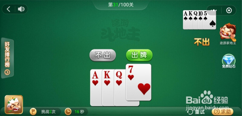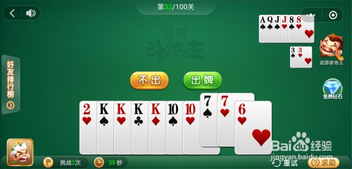电脑打出一对J,我打出K炸,接着打出一张2一张6就过关了。