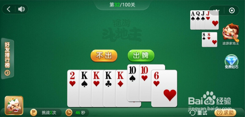 第32关先打出一张4,电脑打出一张6。