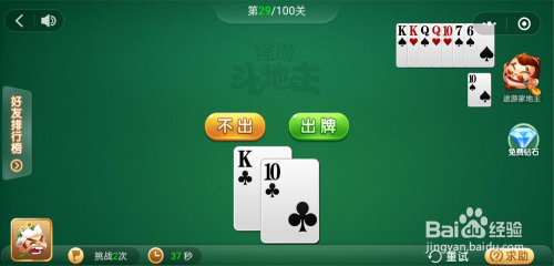 电脑打出一张10,我打出一张K接着打出一张10就过关了。