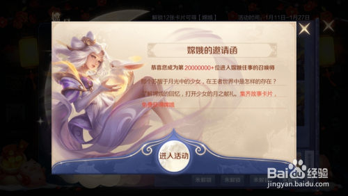 2、进入嫦娥的邀请函界面,点击进入活动