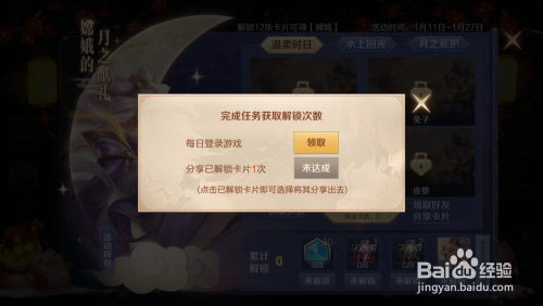 3、可以看到,这个活动就是让我们集齐12张卡片,然后就能获得新英雄,集卡片的方式很简单,点击获取次数,每日登岸游戏和分享活动就可以获取解锁卡片次数