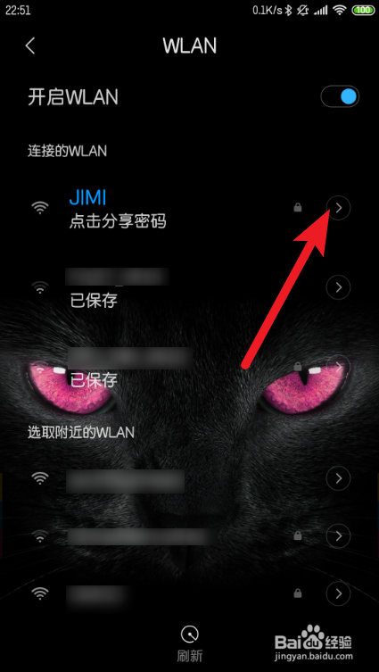 接着下滑了,然按住wifi。就是已经毗连上的wifi了。