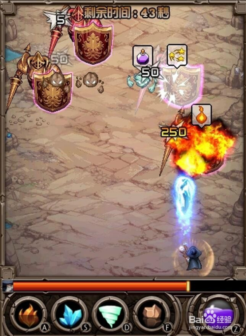接下来就是这种年夜怪,年夜怪就需要用技术打,否则你通俗进犯底子打不动,我的建议是直接,空格加四个技术键一路不断乱按,危险和频率都可以,很轻易就过了。