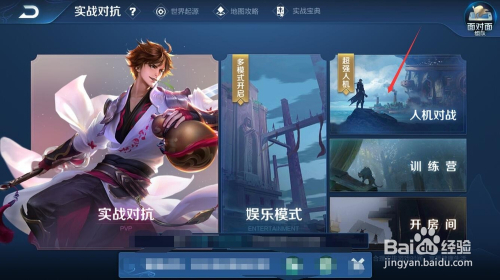 对战模式中点人机对战。