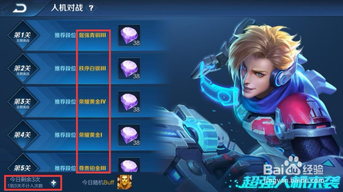 人机对战需要达到段位的指定前提可挑战,且每日的挑战次数为三次,第一关到第三关不计较进入次数。