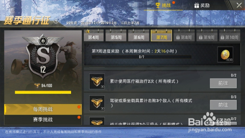 多完当作挑战。点击用户名下的“通行证”,再点击“挑战”,就可以看到可以或许获取到赛季通行证奖章的挑战使命。本家儿要有每周挑战和赛季挑战。