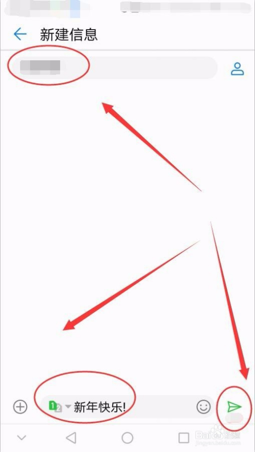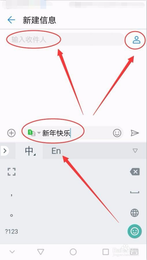 呈现的窗口中,输入短信内容后,单击上方的输入收件人选项,输入对方德律风号码。