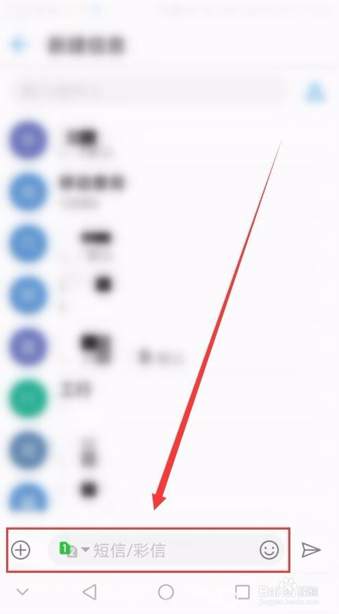 新建信息窗口中,单击下方短信彩信框,输入短信内容。