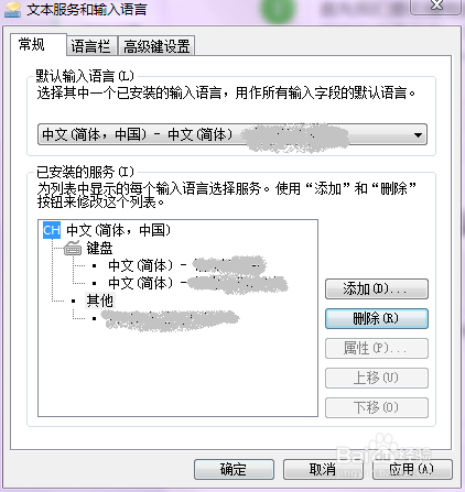 若是依然是中文输入法就先反复1,2,3步,再点击中文(简体,中国),点删除,接着点应用,确定就可以了。需要中文输入法稍后再按添加英语(美国)的方式添加中文输入法即可。