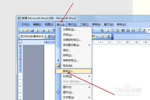 鼠标左键点击“插入”菜单,选择“数字”。
