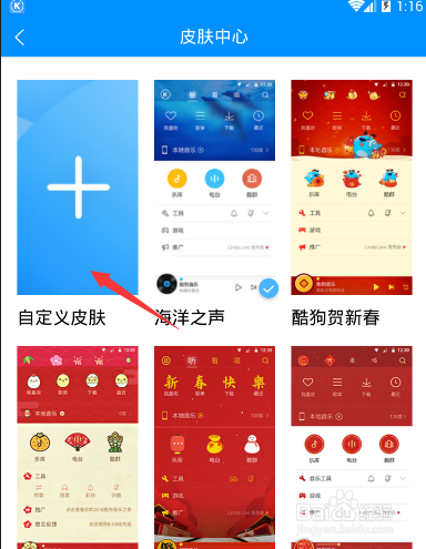 若是想要设置自界说皮肤,就需要点击箭头所指的自界说皮肤,来进入页面。