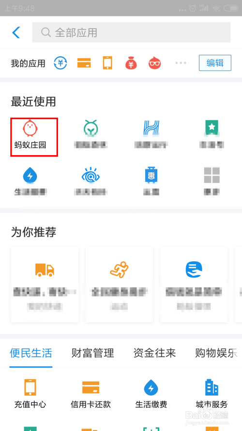 点击【更多】,从比来拜候那边找到【蚂蚁庄园】。