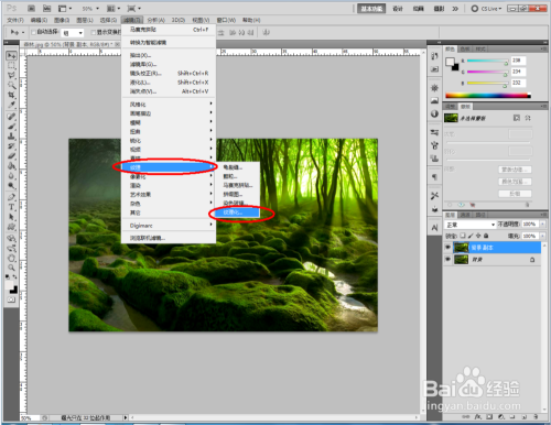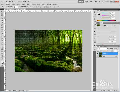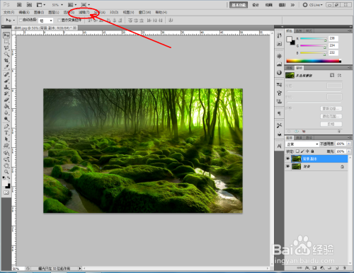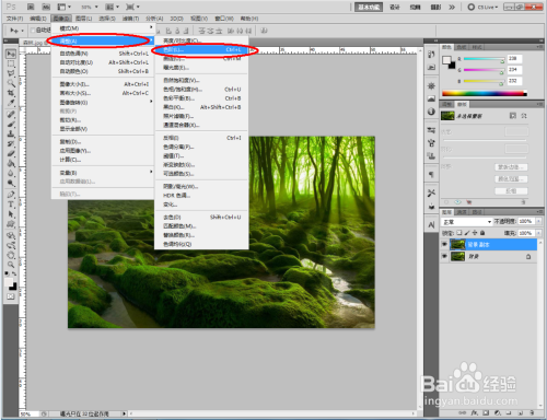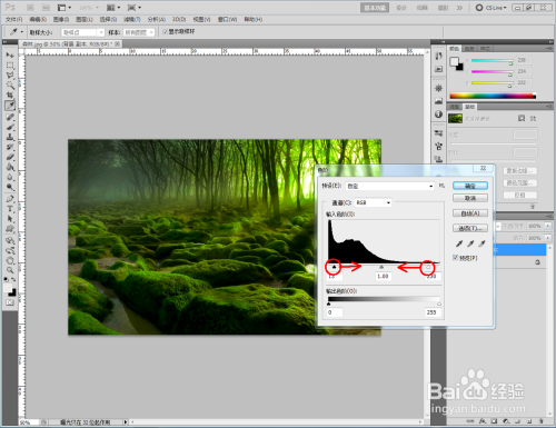 打开Photoshop CS5软件,将图片拉进软件中打开,鼠标拉动布景图层至【新建图层】图标处新建一个图层。点击【图像】-【调整】-【色阶】,对图片的对比度进行调整(如图所示);